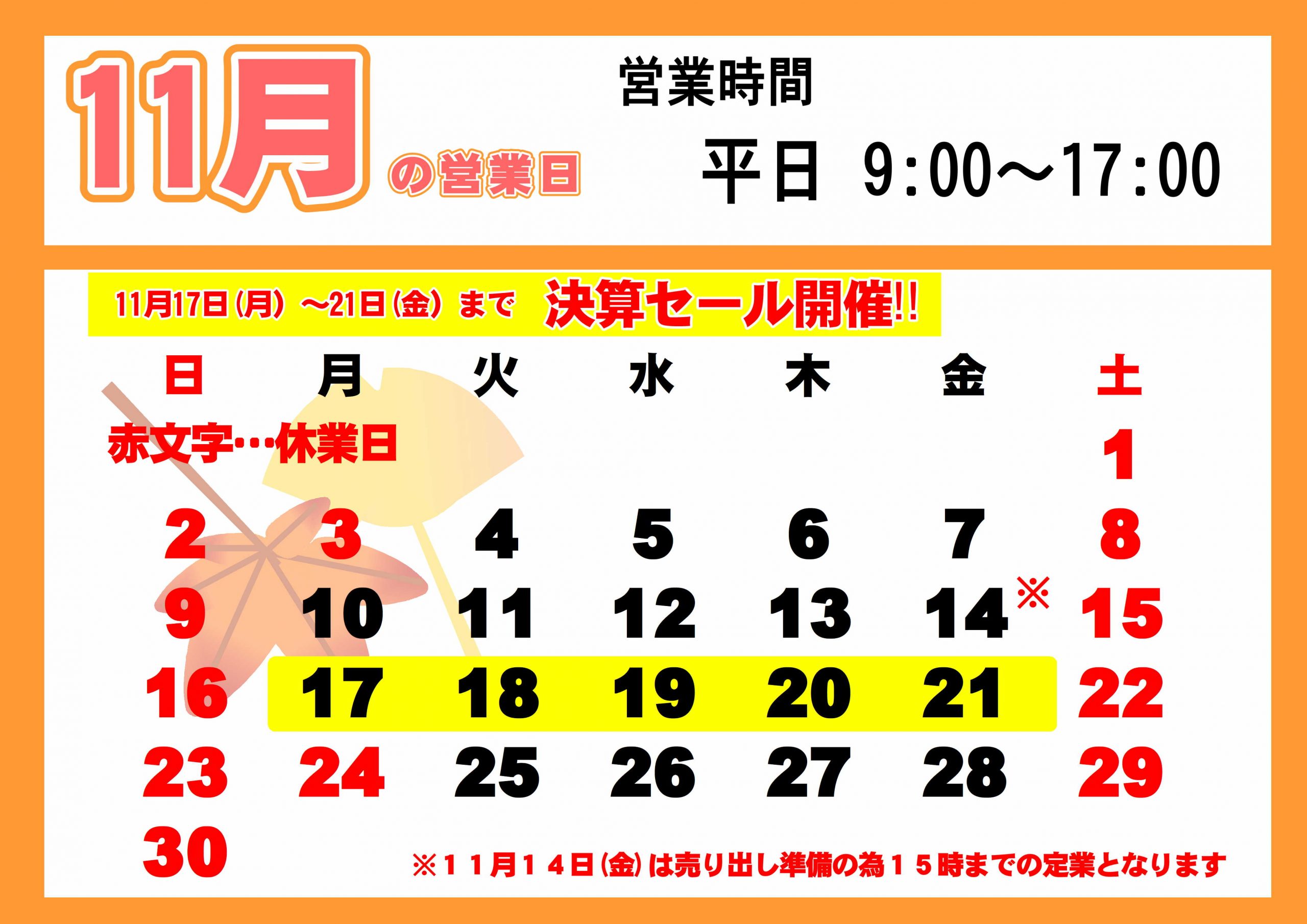 年末年始の当店の営業予定のお知らせです。